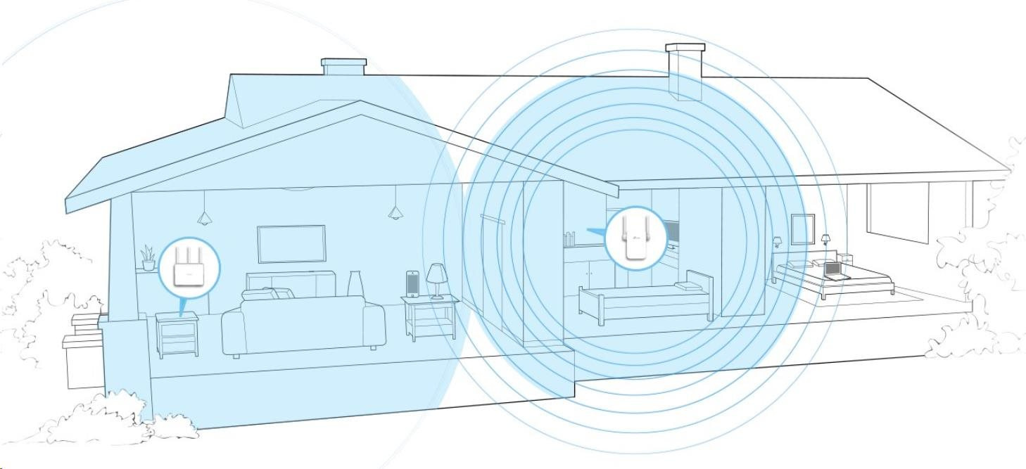 - Oživí mŕtve zóny vo Wi-Fi sieti vďaka silnému rozšíreniu s kombinovanou rýchlosťou prenosu dát až 1,2 Gbit/s