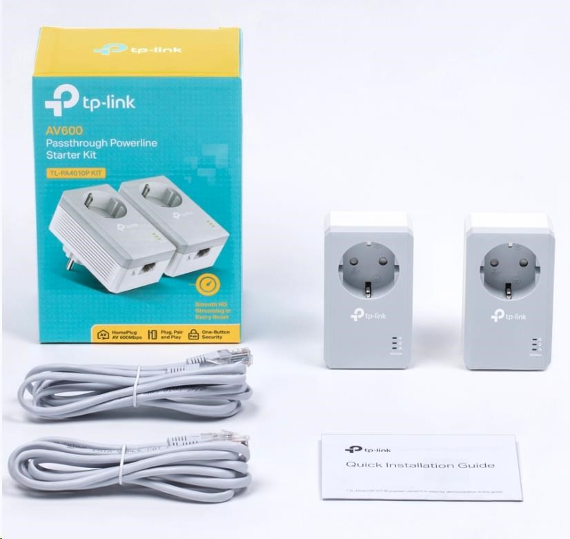 .TP-Link TL-PA4010PKIT průchozí powerline set (AV600, 1x100Mb/s, HomePlug AV)