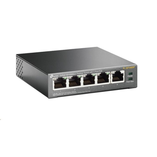 TP-Link switch TL-SF1005P (5x100Mb/s, 4xPoE+, 67W, fanless)