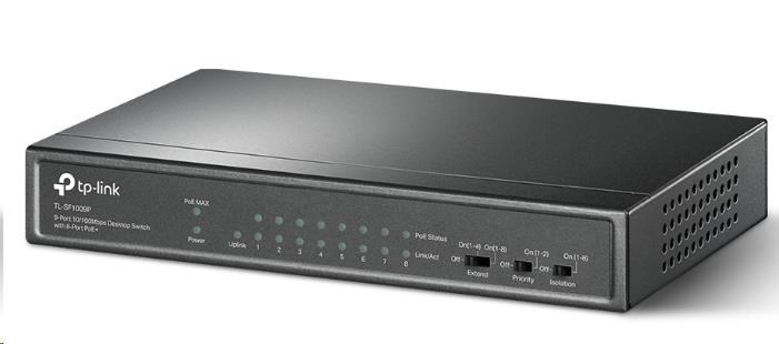 TP-Link CCTV switch TL-SF1009P (8x100Mb/s, 1x100Mb/s uplink, 8xPoE+, 65W, fanless)