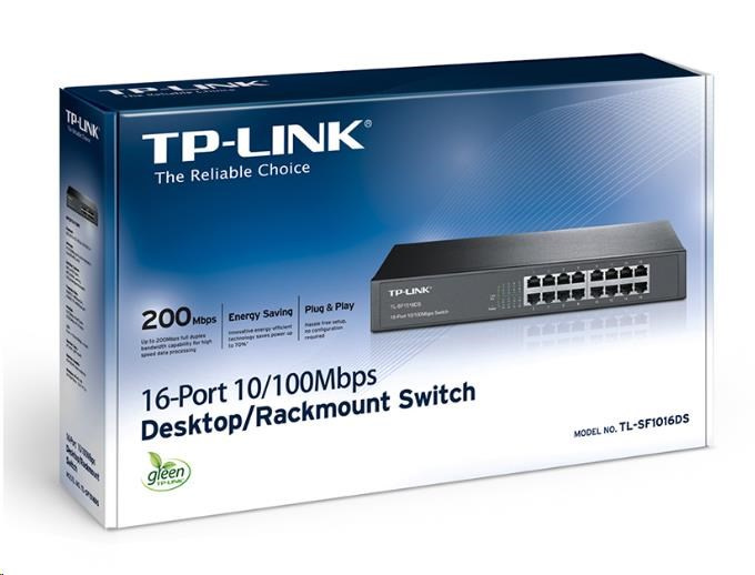 Switch TL-SF1016DS Fast Ethernet predstavuje výkonnú, cenovo dostupnú, ľahko použiteľnú, bezproblémovú a štandardnú možnosť upgrade staršej siete na sieť s rýchlosťou 1 000 Mbit/s. Všetkých 16 portov podporuje funkciu Auto MDI/MDIX, vďaka čomu sa nemusíte starať o príslušný typ kábla – stačí zapojiť a používať. Navyše s inovativnou technológiou úspory energie dokáže zariadenie TL-SF1016DS znížiť spotrebu energie až o 25 %; 80 % obalového materiálu je možné recyklovať. To všetko z týchto zariadení robí ekologické riešenie pre vašu firemnú sieť.