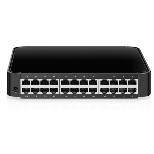 - 24 portov 10/100 Mbit/s RJ45 s podporou automatického vyjednávania a Auto MDI/MDIX