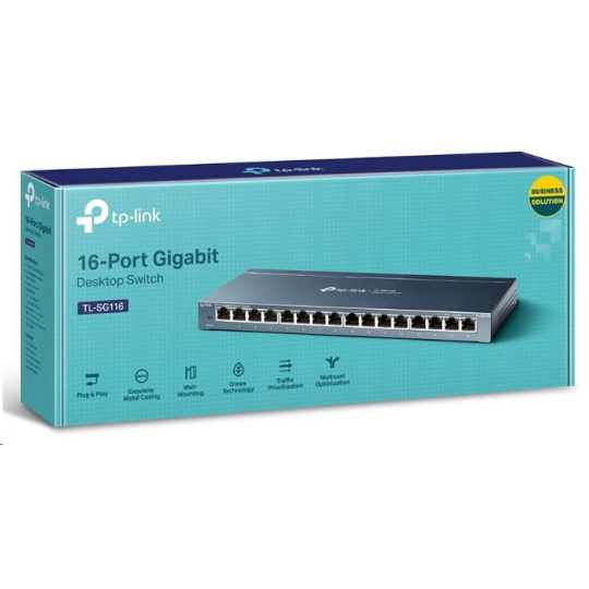 Stolný switch TL-SG116 predstavuje jednoduchý spôsob, ako zvýšiť rýchlosť vášho sieťového servera a panelových pripojení. Či pracujete z domu alebo z kancelárie, switch TL-SG116 vám vždy pomôže rýchlo a ľahko vyriešiť obchodné potreby.