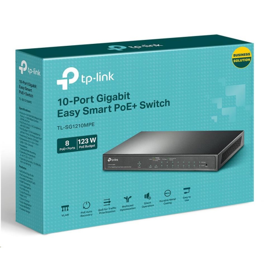 TP-Link CCTV Easy Smart switch TL-SG1210MPE (8xGbE, 1xGbE uplink, 1xGbE/SFP combo uplink, 8xPoE+, 123W, fanless)