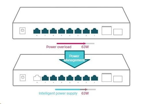- Vysoký PoE rozpočet napájania s až 30W na každý PoE port a 63W na všetky PoE porty