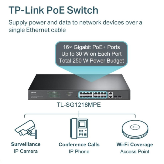 TP-Link CCTV Easy Smart switch TL-SG1218MPE (16xGbE, 2xGbE/2xSFP combo, 16xPoE+, 250W)