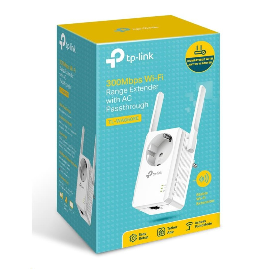 | Package Contents | 300Mbps Wi-Fi Range Extender with AC Passthrough TL-WA860RE RJ-45 Ethernet Kábel Resource CD Rýchly inštalačný sprievodca |