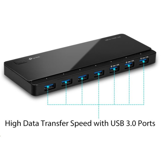 USB rozbočovač UH700 je skvelou voľbou na rozšírenie USB portov počítača na prenos dát, keď potrebujete súčasne pripojiť USB disk, USB myš, tlačiareň alebo iné zariadenia. Port USB 3.0 umožňuje prenosovú rýchlosť až 5 Gbit/s, 10-krát rýchlejšiu než USB 2.0.