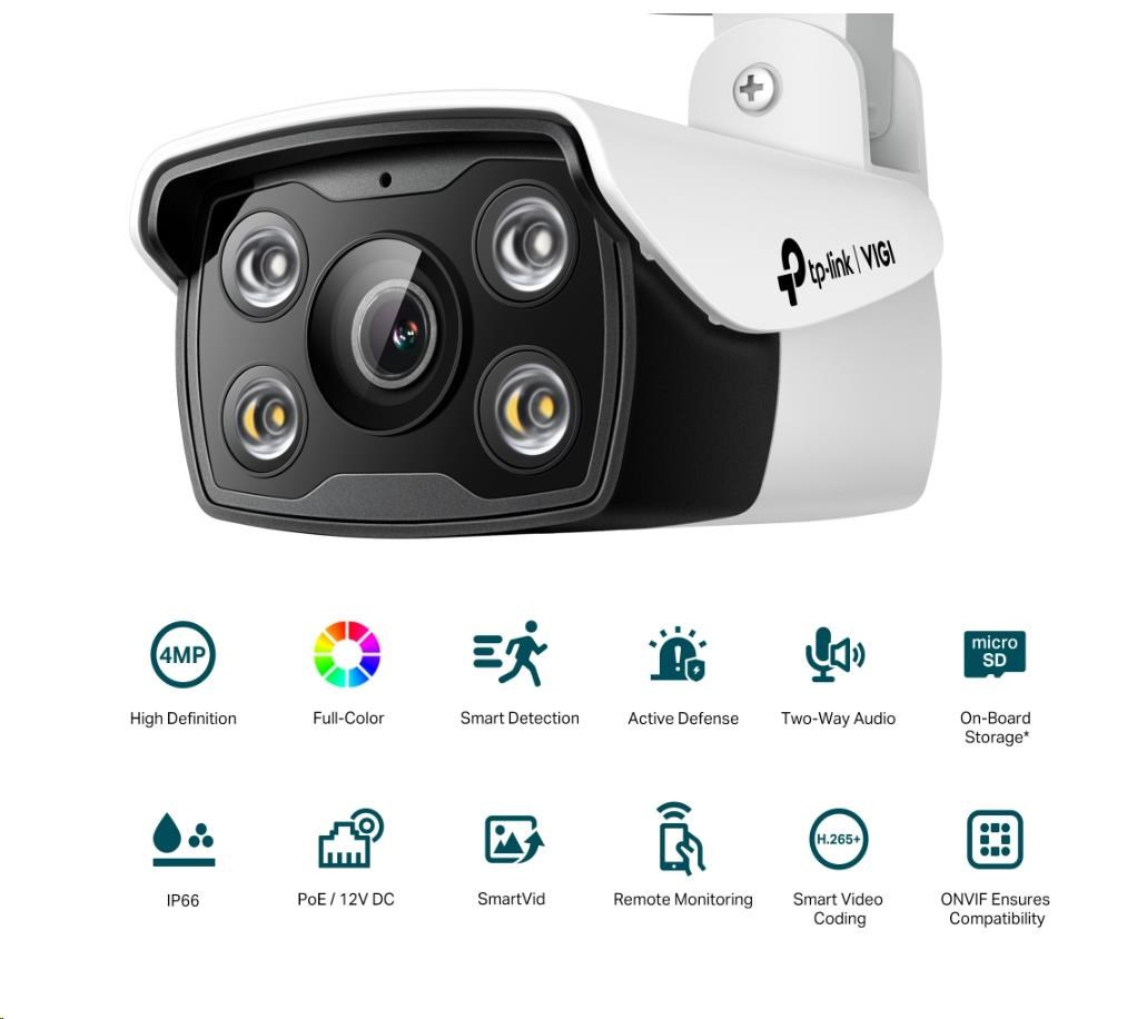 TP-Link VIGI C340 (2.8mm), 4MP, Bullet, PoE, IR 30m, Micro SD card