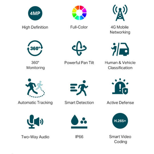 VIGI 4MPx Vonkajšia Full-Color Sieťová kamera 4G s možnosťou otáčania a naklápania
