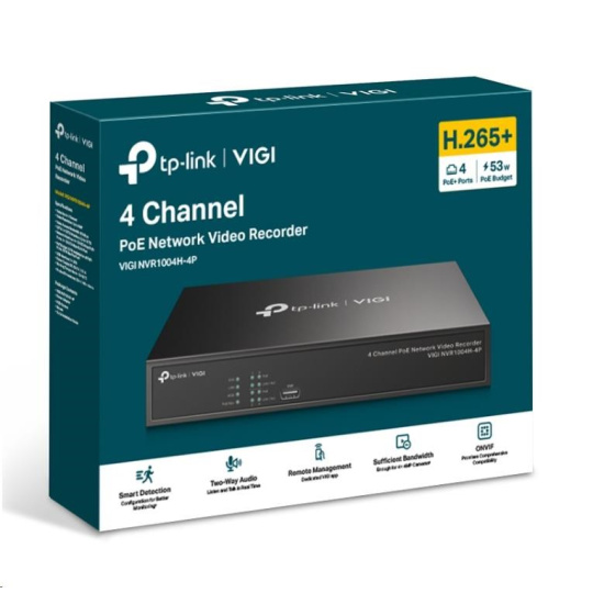 TP-Link VIGI NVR1004H-4P, videorekordér, 4 channels, 4xPoE, 1xSATA, 1x100Mb/s LAN, 2xUSB2.0, 1xHDMI,1xVGA