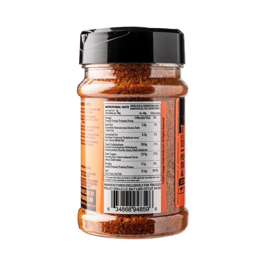 Naše korenie Traeger Rub predstavuje dokonalú zmes sladkej, slanej a pikantnej chuti, ktorá zvýrazní chuť akéhokoľvek mäsa, na ktoré ho nanesiete. Pikantný cesnak sa snúbi s bylinkovými tónmi bazalky a oregána a jemnou dymovou chuťou papriky a chilli papričiek, ktoré dopĺňajú všetko od libového kuracieho mäsa až po výraznú hovädziu hrudu.
