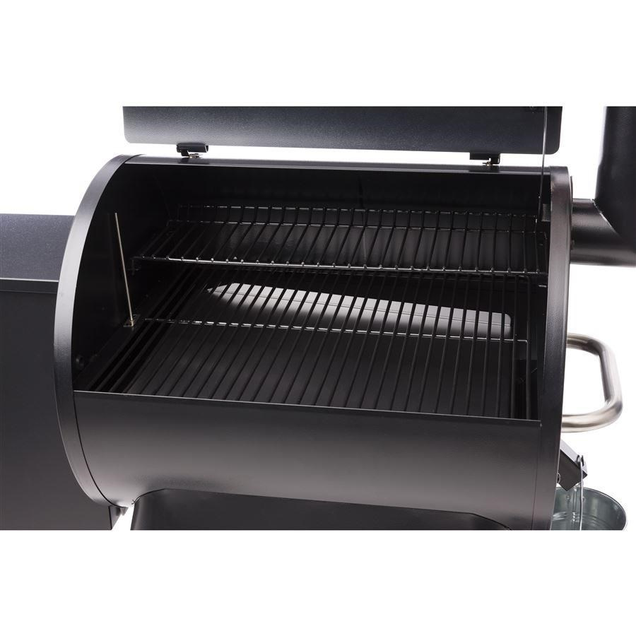 Táto elektrická gril na drevené pelety ponúka všestranný teplotný rozsah od nízkeho nastavenia na pomalé "fajčenie" až po 450 °F, čo umožňuje širokú škálu prípravy pokrmov vrátane udiarenia, pečenia a grilovania. Je vybavený dvomi radmi porcelánom potiahnutých oceľových roštov, ktoré poskytujú 572 štvorcových palcov varnej plochy a ľahko sa čistia. Pre optimálnu funkčnosť a jednoduché použitie je gril vybavený zásobníkom na pelety s kapacitou 18 libier a pohodlnou čistiacou zásuvkou, ktorá umožňuje rýchlu výmenu príchutí pelet. Rýchle zahrievanie a konštantná regulácia teploty je zabezpečená napájaním 120 V AC a výkonom 250 W. Na spustenie stačí pripojiť priložený 6-stopový napájací kábel AC do najbližšej zásuvky. Súčasťou balenia je tiež jedna sonda na mäso Traeger, ktorá uľahčuje monitorovanie vnútorných teplôt mäsa. Je dôležité poznamenať, že tento model nie je vybavený WiFIRE® pripojením.
