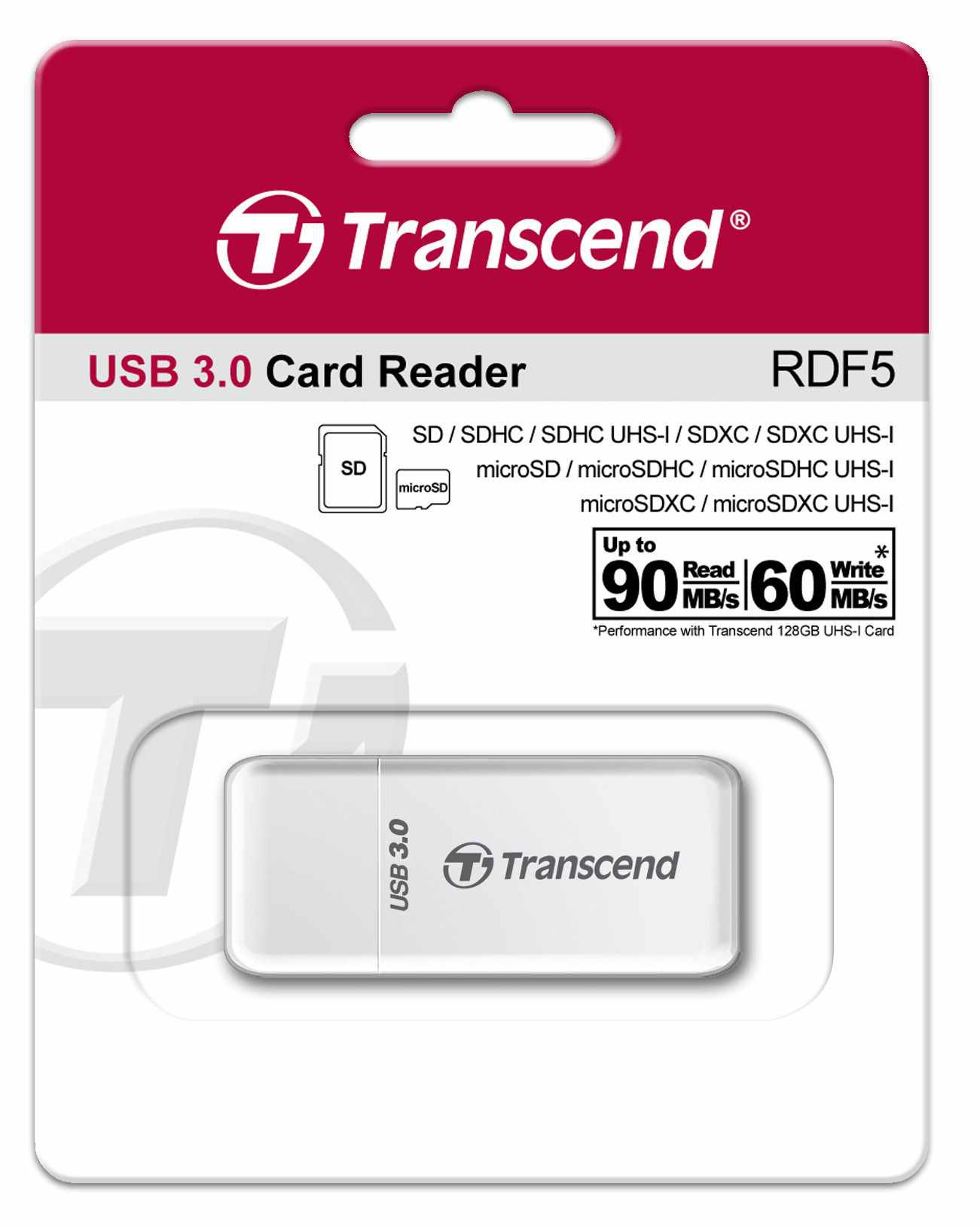 Čítačka kariet TRANSCEND F5, USB 3.0, biela
