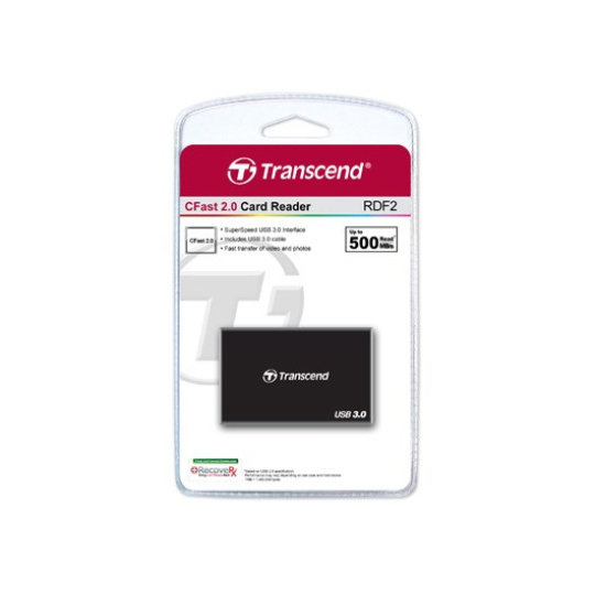 CFast 2 od spoločnosti Transcend.0 Čítačka kariet RDF2 je určená výhradne pre profesionálnych kameramanov, ktorí sa usilujú o extrémnu účinnosť prenosu s pamäťovými kartami CFast. S rozhraním SuperSpeed USB 3.0, RDF2 vykazuje úžasnú prenosovú rýchlosť až 500 MB za sekundu*, čo je 10-krát rýchlejšie ako USB 2.0 rozhranie. Vďaka tejto čítačke kariet môžu profesionáli ušetriť značné množstvo času pri prenose zvukových súborov s vysokým rozlíšením a sústrediť sa na svoju prácu. Kompaktný a prenosný dizajn kamery RDF2 umožňuje používateľom ľahko ju prenášať zo štúdia na miesto natáčania bez toho, aby ich zaťažovala.