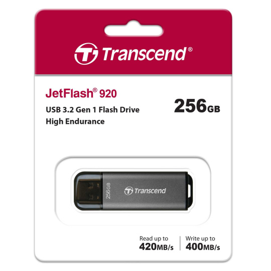 Predstavujeme vám vysoko odolný a výkonný USB flash disk JetFlash 920 od spoločnosti Transcend, ktorý nie je obyčajný. Vďaka senzačným rýchlostiam čítania až 420 MB/s a zápisu až 400 MB/s poskytuje JetFlash 920 špičkový výkon v elegantnom a prenosnom dizajne. Jeho hliníkové kovové puzdro ochráni vaše údaje, nech ste kdekoľvek.
