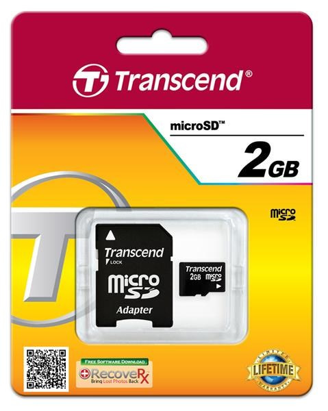 Karta TRANSCEND MicroSD 2GB + adaptér