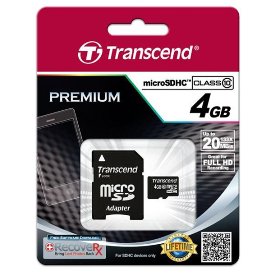 Karta TRANSCEND MicroSDHC 4GB Class 10 + adaptér