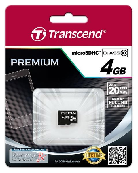 Karta TRANSCEND MicroSDHC 4 GB triedy 10, bez adaptéra
