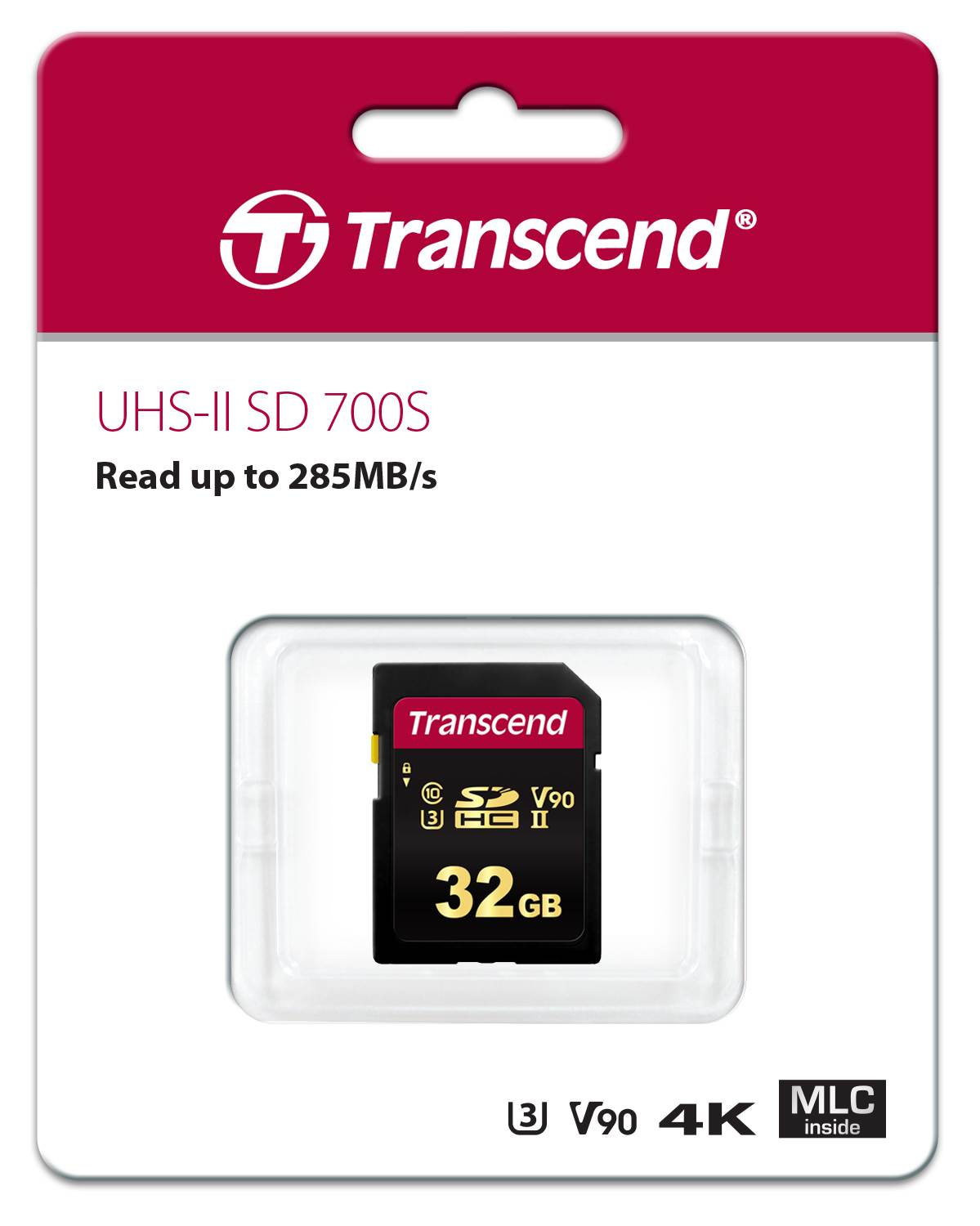 Pamäťové karty Transcend SDXC/SDHC 700S spĺňajú štandardy UHS-II Speed Class 3 (U3) a UHS Video Speed Class 90 (V90) pre videozáznamy v rozlíšení 4K Ultra HD s rýchlosťou čítania/zápisu až 285 MB/s a 180 MB/s.