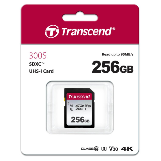 Karta TRANSCEND SDXC 256GB 300S, UHS-I U3 V30 (R:95/W:45 MB/s)