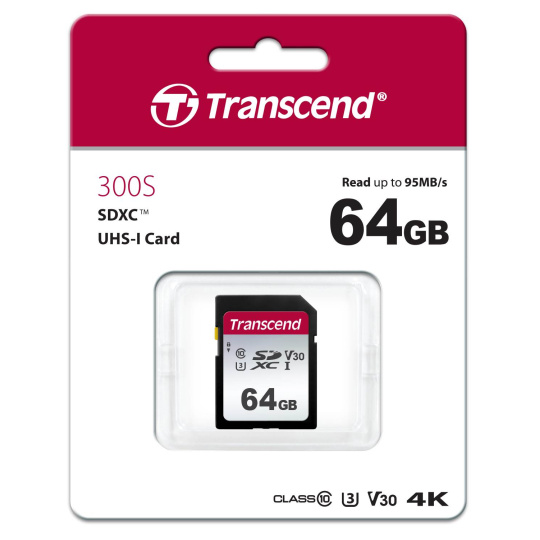 Karta TRANSCEND SDXC 64GB 300S, UHS-I U3 V10 (R:100/W:25 MB/s)