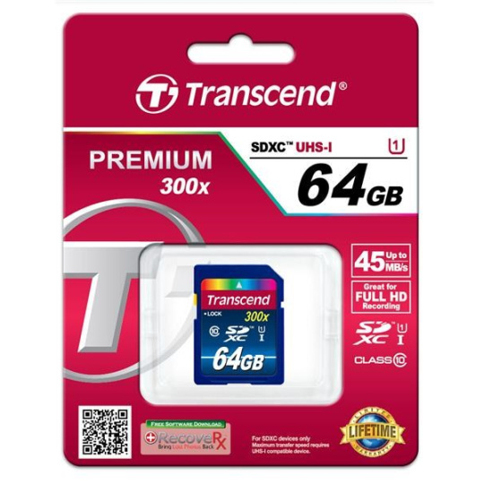 Karta TRANSCEND SDXC 64GB Premium, Class 10 UHS-I 300x