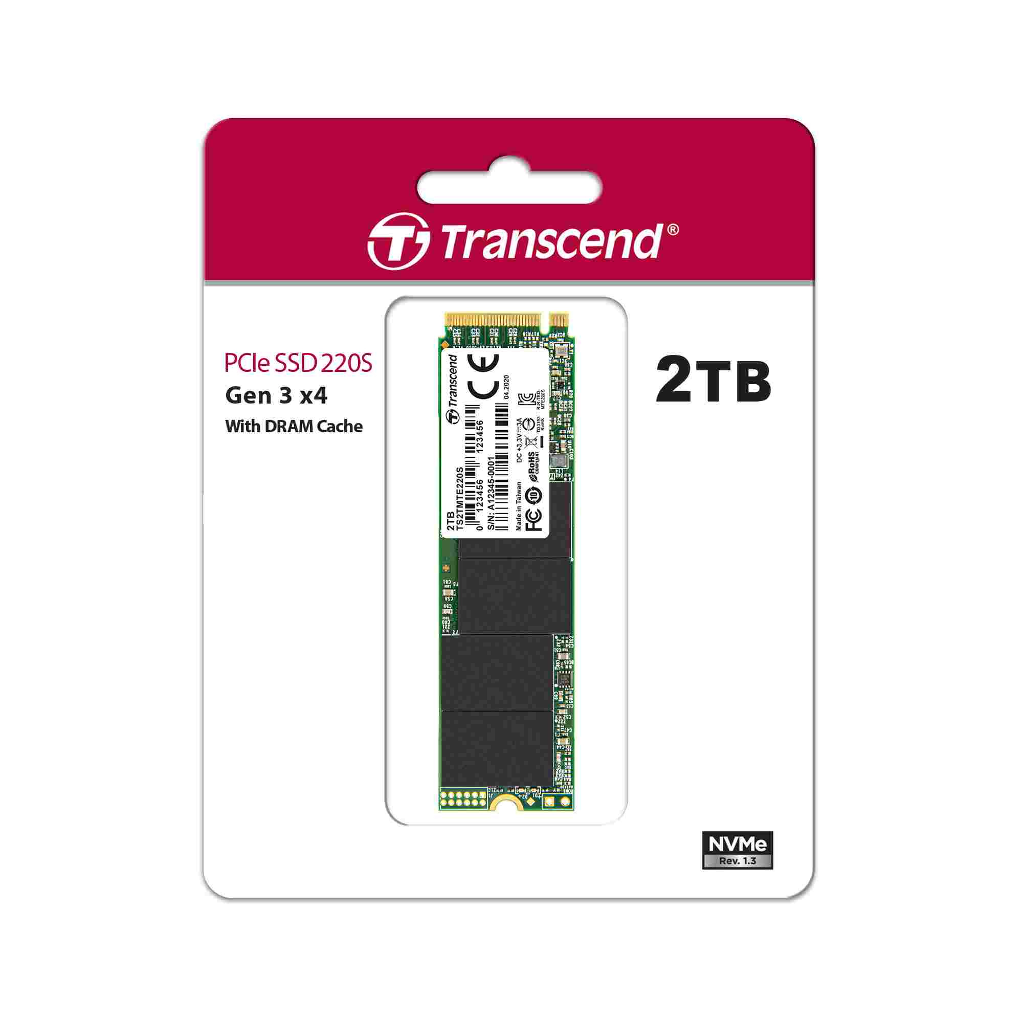 TRANSCEND SSD 220S 2TB, M.2 2280, PCIe Gen3x4, NVMe, M-Key, 3D TLC, s Dram