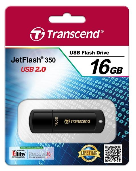 TRANSCEND Flash disk 16GB JetFlash®350, USB 2.0 (R:13/W:4 MB/s) čierna