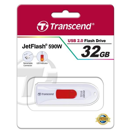 TRANSCEND Flash disk 32GB JetFlash®590W, USB 2.0 (R:16/W:6 MB/s) biela