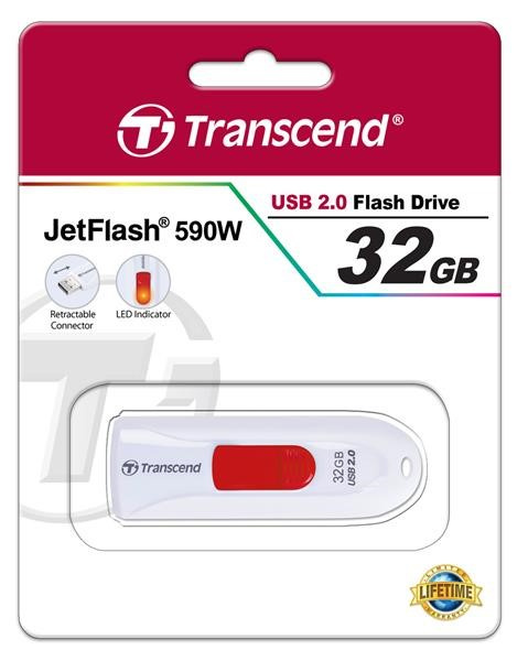 TRANSCEND Flash disk 32GB JetFlash®590W, USB 2.0 (R:16/W:6 MB/s) biela
