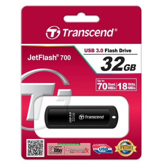 TRANSCEND Flash disk 32GB JetFlash®700, USB 3.0 (R:71/W:18 MB/s) čierna