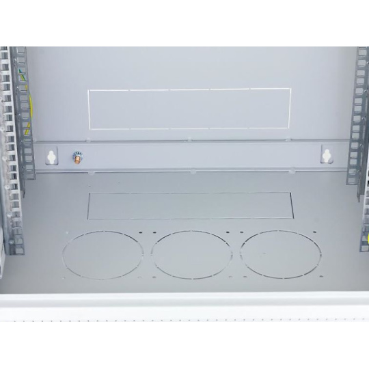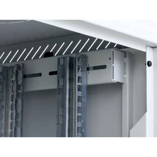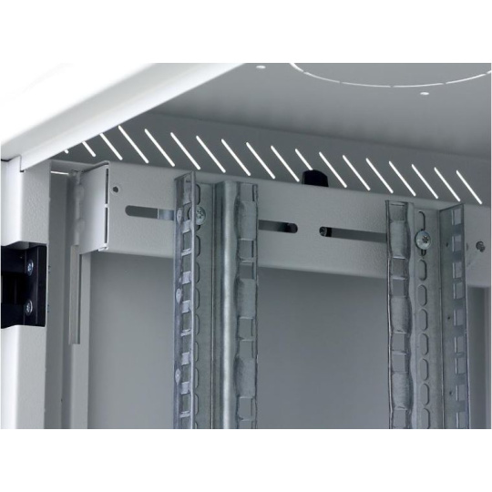 Dva páry 19" vertikálnych koľajníc sú plynule nastaviteľné v ľubovoľnej hĺbke stojana. To uľahčuje inštaláciu zariadenia a usporiadanie pripojovacích káblov.