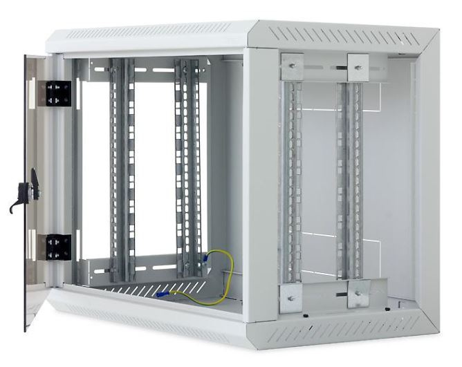 Dva páry 19" vertikálnych koľajníc sú plynule nastaviteľné v ľubovoľnej hĺbke stojana. To uľahčuje inštaláciu zariadenia a usporiadanie pripojovacích káblov.