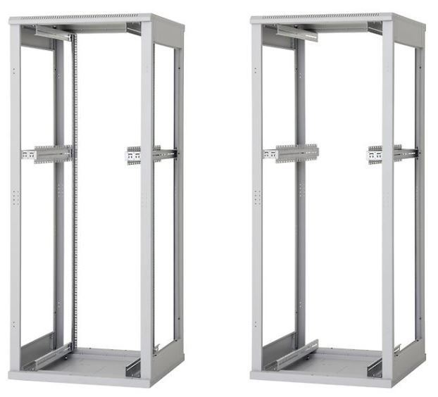 (platí pro šíři rozvaděče 800 mm). Systém umožňuje instalaci posuvných vertikálních lišt v rozponu 19“, 21“ a 23“, přesně podle požadavků instalovaných zařízení.