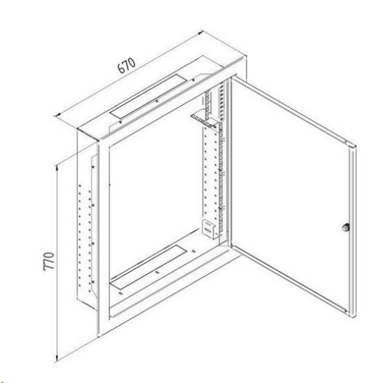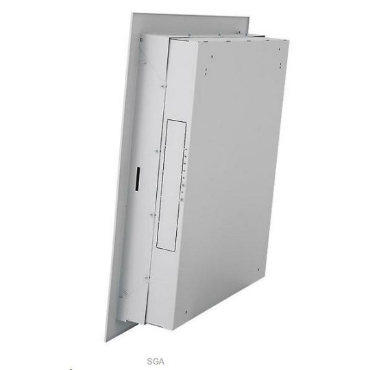 Hybridný rozvádzač SHA - IP20, nosnosť 30 kg. Rozvádzač je určený na zapustenú montáž (model SGA) JEDNODUCHÁ INŠTALÁCIA Horná polovica skrine je vybavená posuvnými držiakmi na montáž 19" patch panelov alebo vane s ističom. MONTÁŽ VODIČOV Na bočných stranách v dolnej polovici skrine sú držiaky pre 19" zariadenia. BREAK-outs v strope a na dne skrine sú pripravené káblové vstupy zakryté break-outs...
