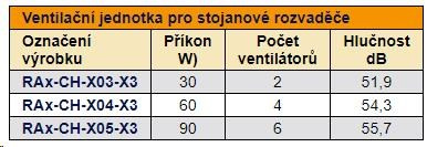 Ventilačná jednotka pre stojanové rozvádzače - inštaluje sa do uzáveru z vonkajšej strany rozvádzača, do základne z vnútornej strany rozvádzača. Pri inštalácii do základne skrine sa musí použiť montážny rám spodnej ventilačnej jednotky - RAx-CH-Xxx-X1, ktorý sa inštaluje pomocou obojstrannej lepiacej pásky.