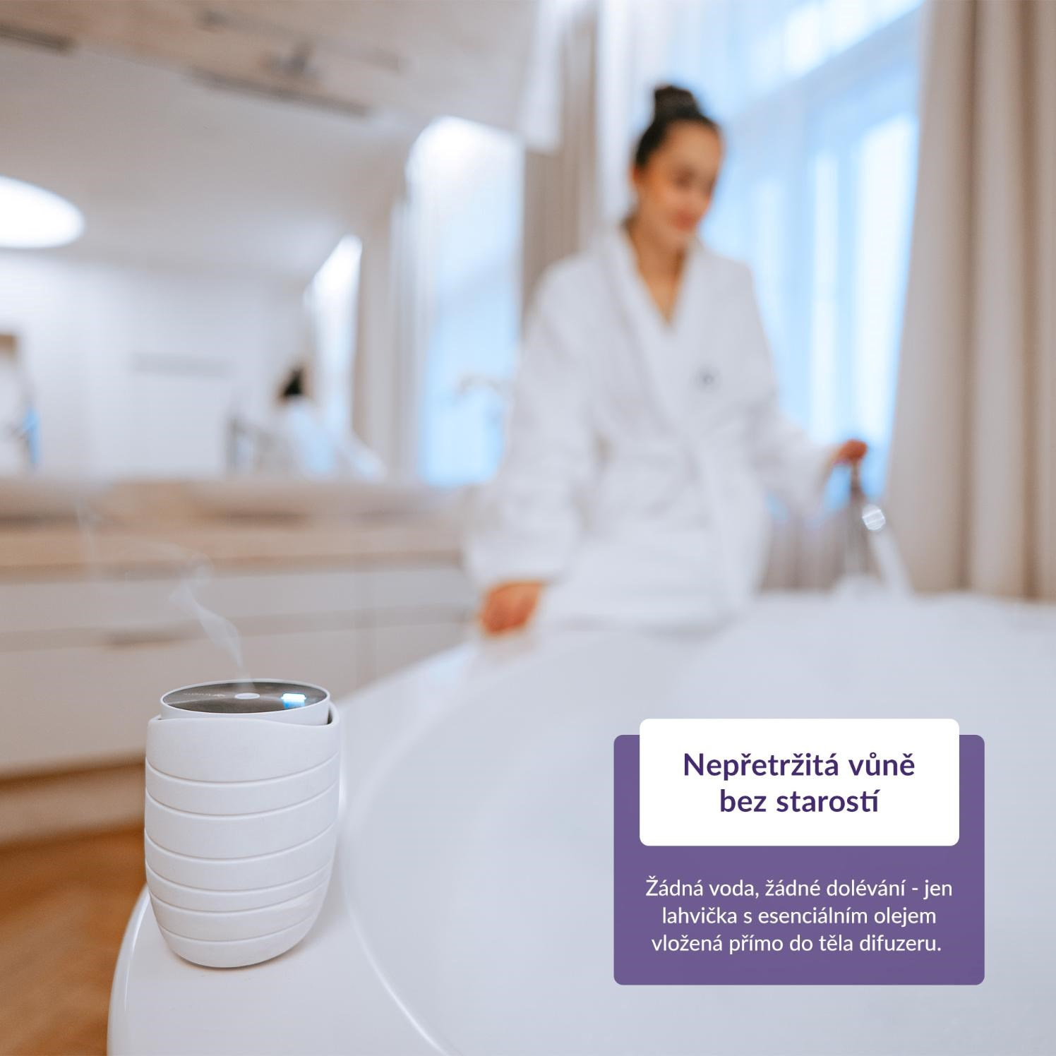 Difúzer pracuje tak ticho, že vás nebude rušiť ani pri spánku či meditácii.