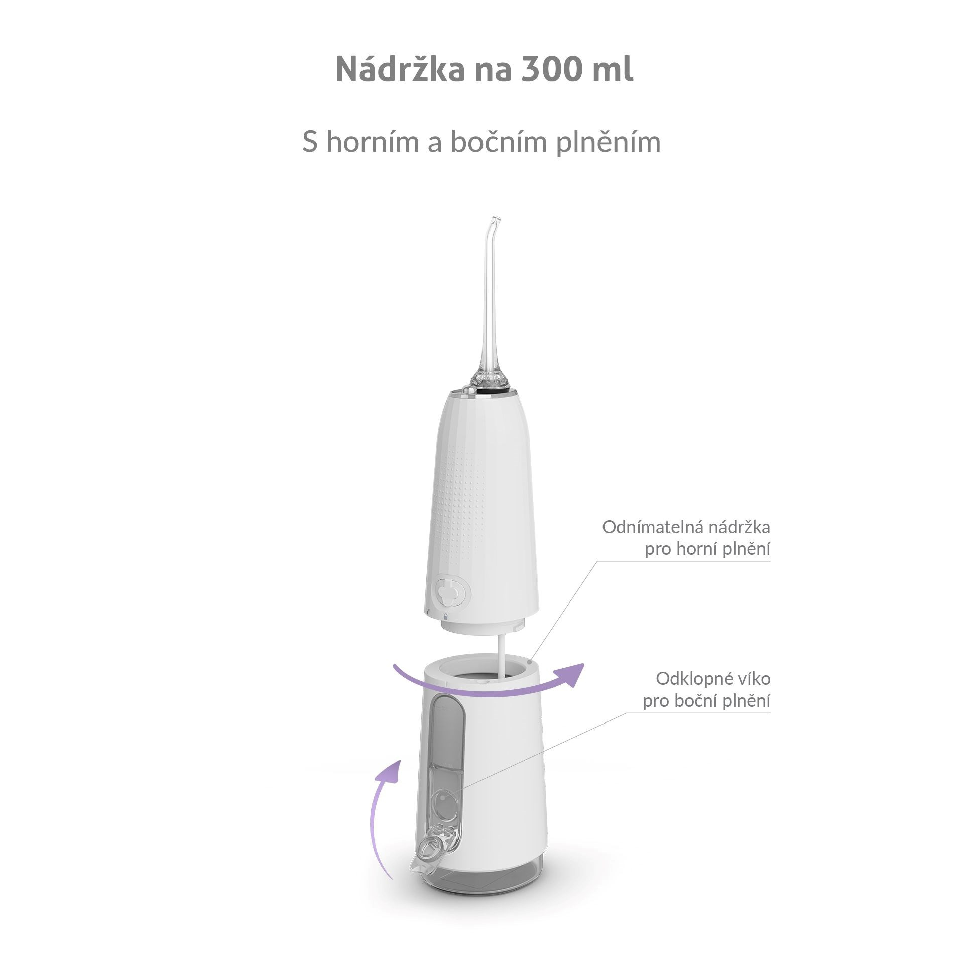 Nádržka s objemom 300 ml vystačí na vyčistenie celého chrupu a zároveň je dostatočne kompaktná. Okrem obyčajnej vody ju môžete naplniť ústnou vodou pre extra sviežosť.