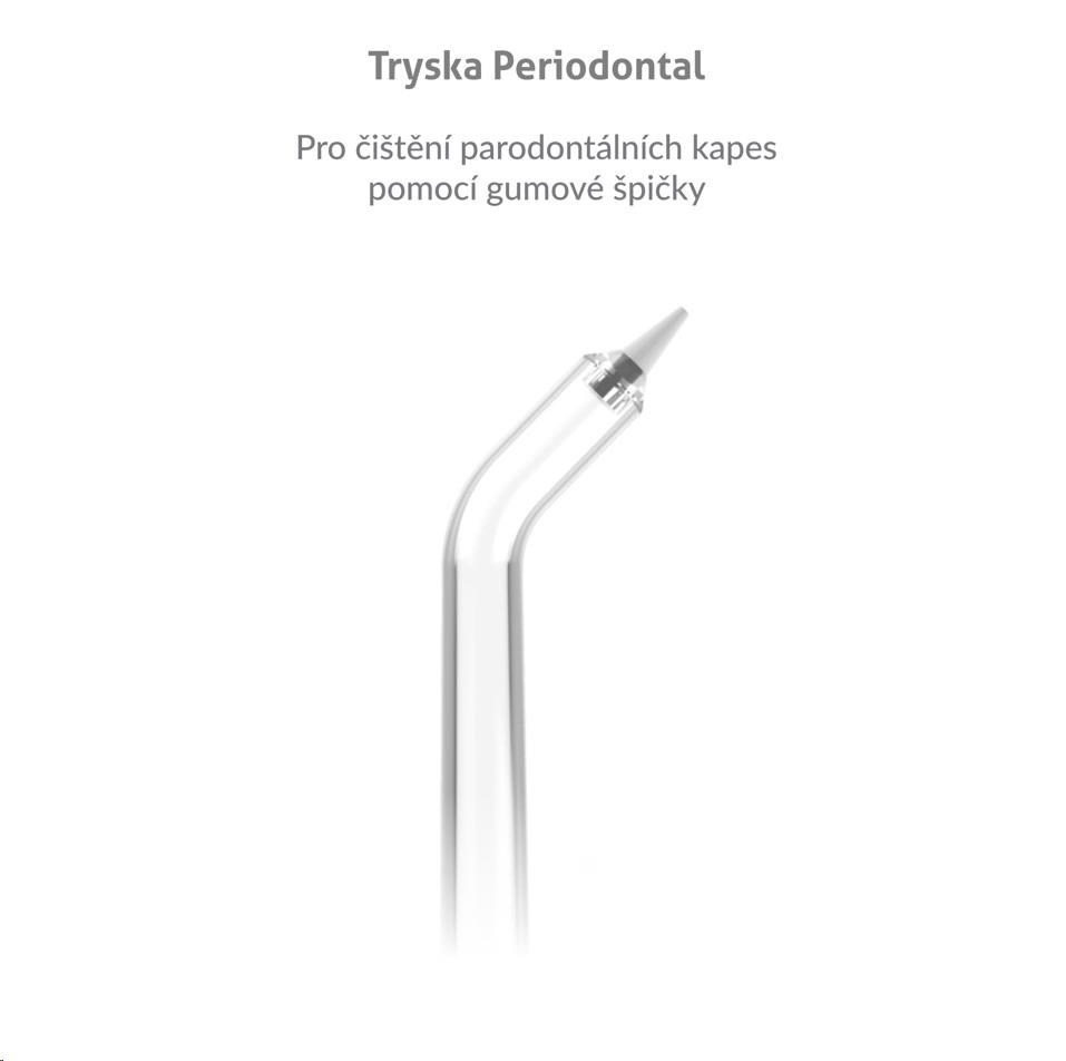 Parodontálna tryska na čistenie parodontálnych kapsičiek pomocou gumovej špičky.