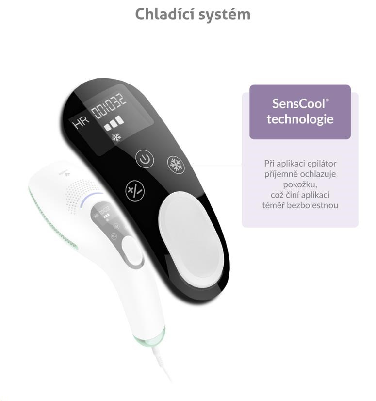 Technológia SensCool® hlídá celú dobu epilácie vašu bezpečnosť. Epilátor môžu používať aj ľudia s citlivou pokožkou.