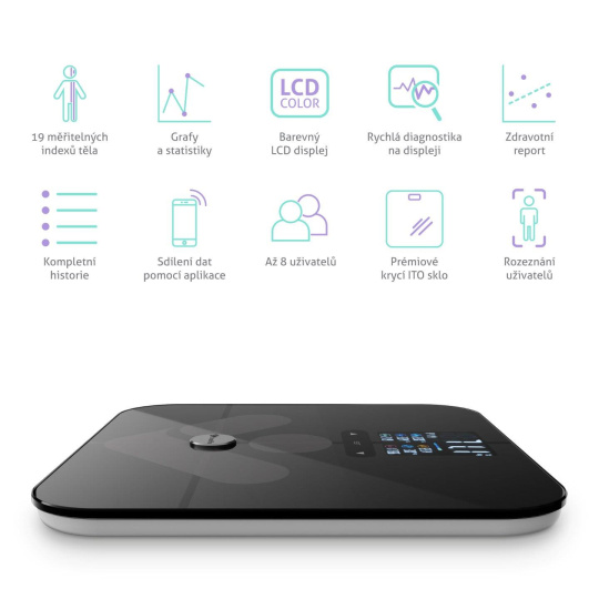 Váha si dokáže zapamätať údaje až 8 používateľov, ktorí tak môžu sledovať a porovnávať vlastnú históriu váženia.