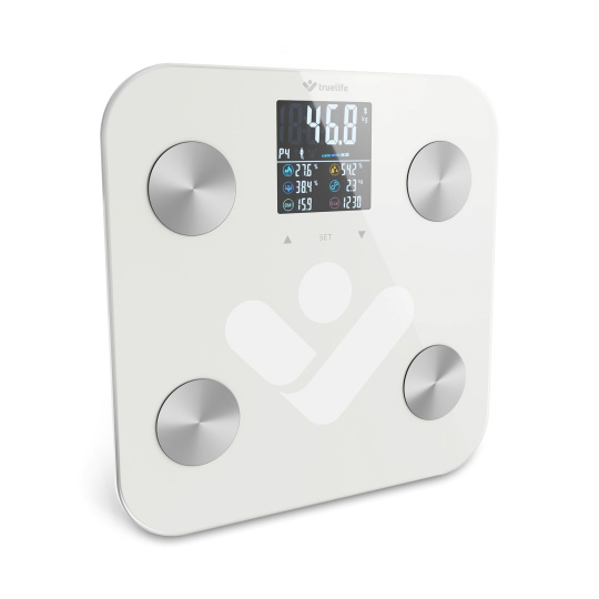 Inteligentná váha TrueLife FitShape S6 BT White dokáže o používateľovi odhaliť oveľa viac než len hmotnosť. O tom, v akom stave je telo, vypovedajú skôr indexy ako BMI, BFR alebo BMR. Ide o výpočty pomerov tukovej tkaniny alebo množstva energie potrebnej na správne fungovanie tela. Takýchto merateľných indexov tela dokáže váha zistiť 19, a to predovšetkým svalovú frekvenciu, pomer vody v tele, hodnotu bielkovín, hmotnosť kostí a veľa ďalších.