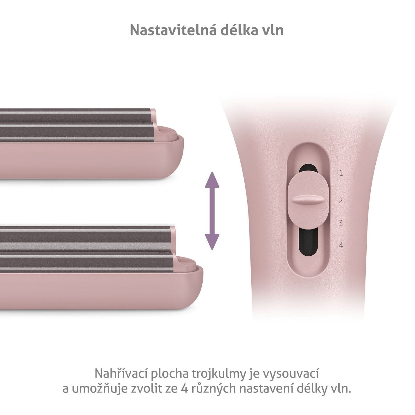 Trojkulma TrueLife HairWaver W6 si vás získa svojím dizajnom, ale keď uvidíte krásu svojich vlasov po jej použití, stane sa vašou najlepšou priateľkou. Trojitý dizajn, pri ktorom vlasy jednoducho vložíte medzi 3 nahrievacie časti a stlačíte dohromady, vytvára prirodzené vlnky ľahko, rýchlo a šetrne. Ich dĺžku si môžete nastaviť podľa svojich preferencií vďaka výsuvnej nahrievacej ploche, pričom máte na výber zo 4 úrovní. Získate veľké množstvo rôznych variantov účesov. Vďaka technológii TrueLife ConstantHeat® teplota počas stylingu vlasov nekolíše a zostáva na zvolenej úrovni, takže vlasom nehrozí poškodenie.