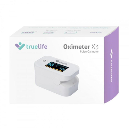 Oxymeter TrueLife X3 zabezpečí okamžité a presné meranie saturácie krvného hemoglobínu kyslíkom a tepovej frekvencie. Namerané hodnoty okamžite a prehľadne zobrazí na vstavanom displeji. Je vhodný najmä pre pacientov s respiračnými ochoreniami alebo srdcovými problémami, ale aj pre vrcholových športovcov. Nájde uplatnenie v lekárničke každej domácnosti.