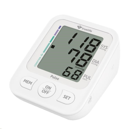 Tlakomer Truelife Pulse využíva oscilometrickú metódu merania tlaku a funguje na princípe nafúknutia manžety, ktorá zabezpečuje maximálnu presnosť nameraných hodnôt. Navyše jeho ovládanie je veľmi jednoduché a všetko podstatné zvládnete stlačením tlačidla START/STOP. Namerané hodnoty zobrazuje veľký a dobre čitateľný trojriadkový displej.