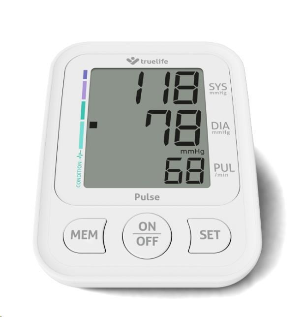 Tlakomer Truelife Pulse využíva oscilometrickú metódu merania tlaku a funguje na princípe nafúknutia manžety, ktorá zabezpečuje maximálnu presnosť nameraných hodnôt. Navyše jeho ovládanie je veľmi jednoduché a všetko podstatné zvládnete stlačením tlačidla START/STOP. Namerané hodnoty zobrazuje veľký a dobre čitateľný trojriadkový displej.