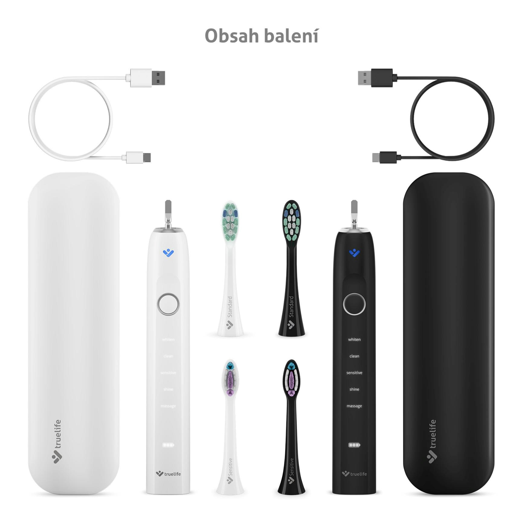 Zdravý úsmev je vizitkou nás všetkých. S balením dvoch sonických kefiek TrueLife SonicBrush Clean70 UV Duo bude starostlivosť o zuby a ďasná nielen dôkladná, ale navyše aj príjemná. Každá z kefiek čistí zuby rýchlosťou až 90 000 pohybov za minútu, čím odstráni až 12× viac zubného povlaku ako manuálna kefka. Sonická technológia SonicTrue® jemnými vibráciami čistí plôšky zubov a vďaka víreniu vody s pastou vytvára mikrobublinky, ktoré preniknú aj do medzizubných priestorov. Tlakový senzor s technológiou SmartPressure® stráži ideálny tlak a varuje pred nadmerným zaťažením ďasien či skloviny. Dobíjacie puzdro s UV sterilizáciou efektívne ničí až 99,9% baktérií a vírusov na hlaviciach. Kefky vydržia až 70 dní na jedno nabitie, disponujú 5 režimami čistenia a 2 typy hlavíc (Standard a Sensitive). Chytrý časovač stráži odporúčané 2 minúty čistenia a funkcia pamäte uchová posledný zvolený režim. Vďaka vysoko citlivému vibračnému senzoru sa kefka automaticky aktivuje a rozsvieti, akonáhle ju vezmete do ruky. Špeciálna jemne pogumovaná povrchová úprava rukoväte je príjemná na dotyk a zabraňuje kĺzaniu aj pri použití s vodou.
