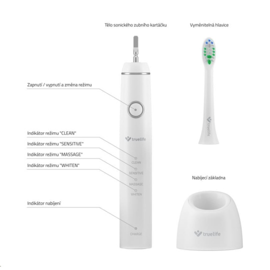 V každom balení TrueLife SonicBrush Compact Duo nájdete 4 hlavice Standard. Odporúčame každé 3 mesiace vymeniť zubnú hlavicu za novú. V ponuke nájdete tri typy. Ak máte zuby veľmi citlivé, skúste hlavice Sensitive, ktoré sú vhodné aj pre deti od 7 rokov. Na čo najbielší úsmev sa vám určite hodia hlavice Whiten.