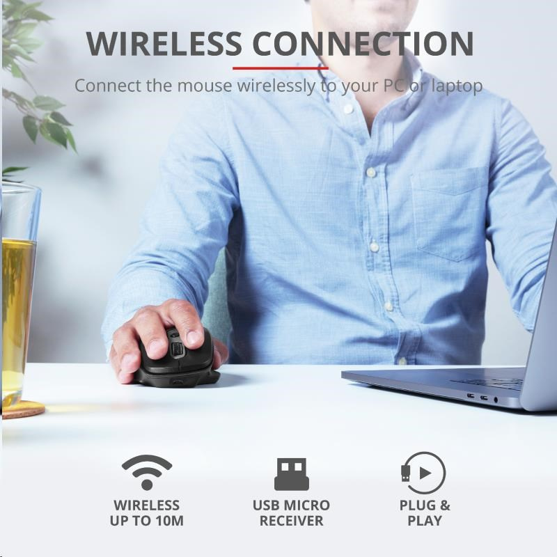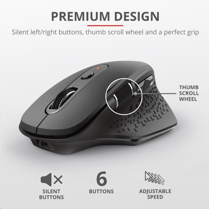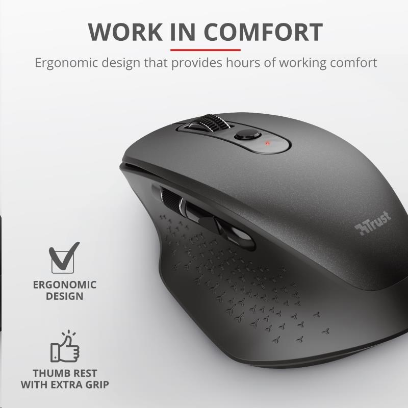 - Prémiová bezdrôtová myš s ergonomickým dizajnom, ktorý poskytuje hodiny pohodlia pri práci